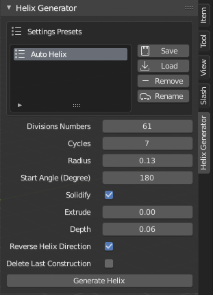 Helix Generator helps designers create complex helixes in just a few clicks, like helix around a line, helix around bezier curves. You can also modeling ropes, braids with this add-on with ease. (See demo video for more details)